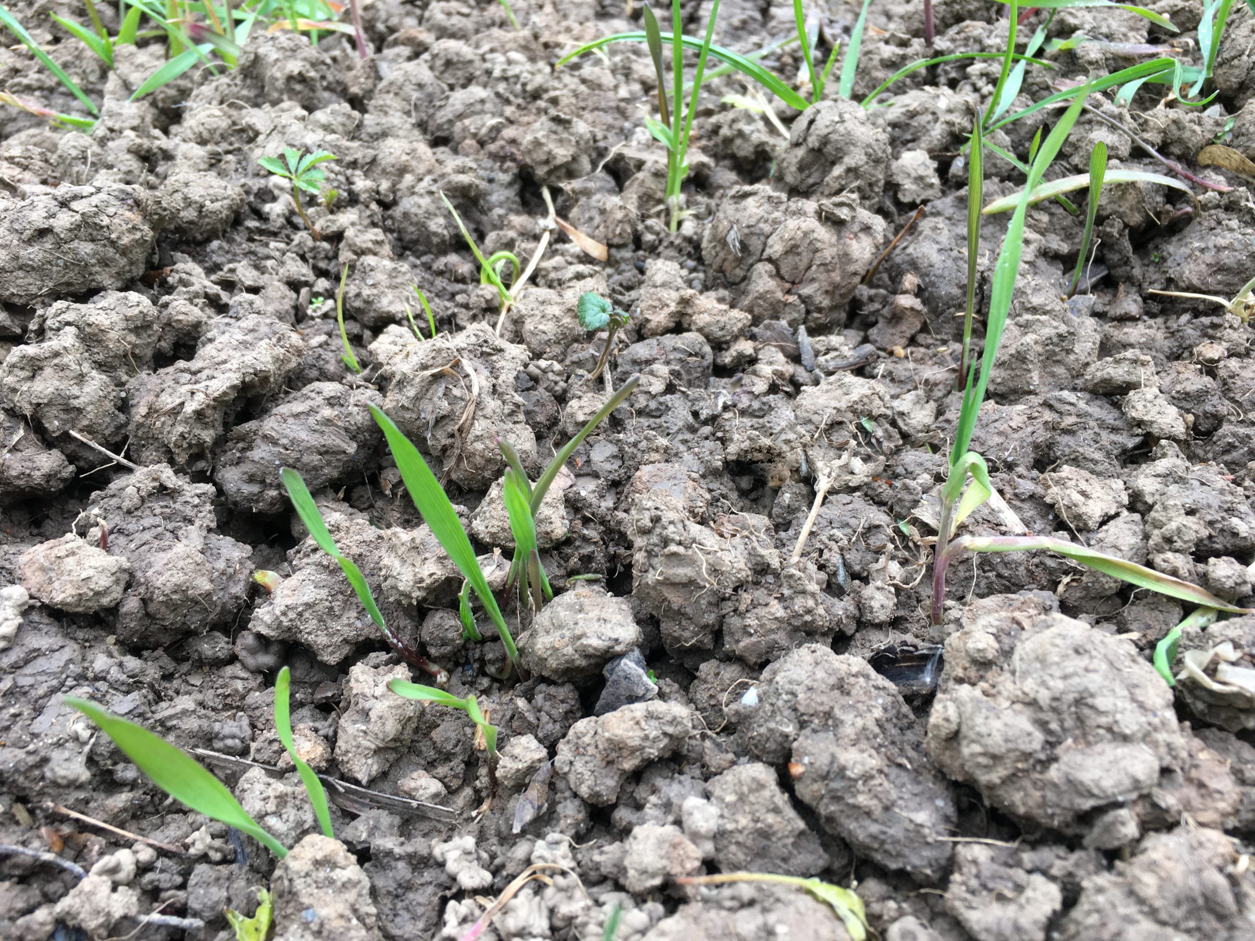 Alles sieht gleich aus. Was ist was? Roggen-Sprösslinge mit zwei Keimblättern und geordnetem Wachstum vs. chaotischem Wuchs.